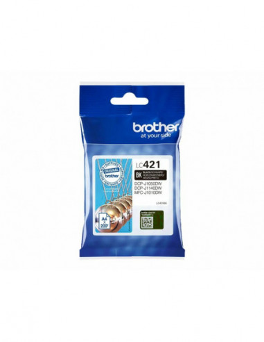 Tinteiro Brother LC421BK, preto, para impressoras Brother compatíveis. Embalagem individual contendo 1 unidade. Rendimento aproximado de 200 páginas em preto.