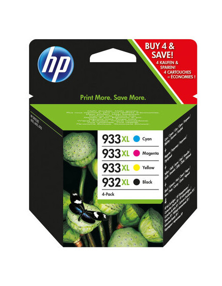 Conjunto de quatro tinteiros originais HP, incluindo um cartucho de tinta preta HP 932 e três cartuchos de tinta colorida HP 933 (cian, magenta e amarelo).  Ideal para pequenas empresas e escritórios domésticos com impressão frequente de textos, gráficos e imagens a cores. Oferece alta qualidade de impressão e é compatível com uma variedade de impressoras HP OfficeJet.