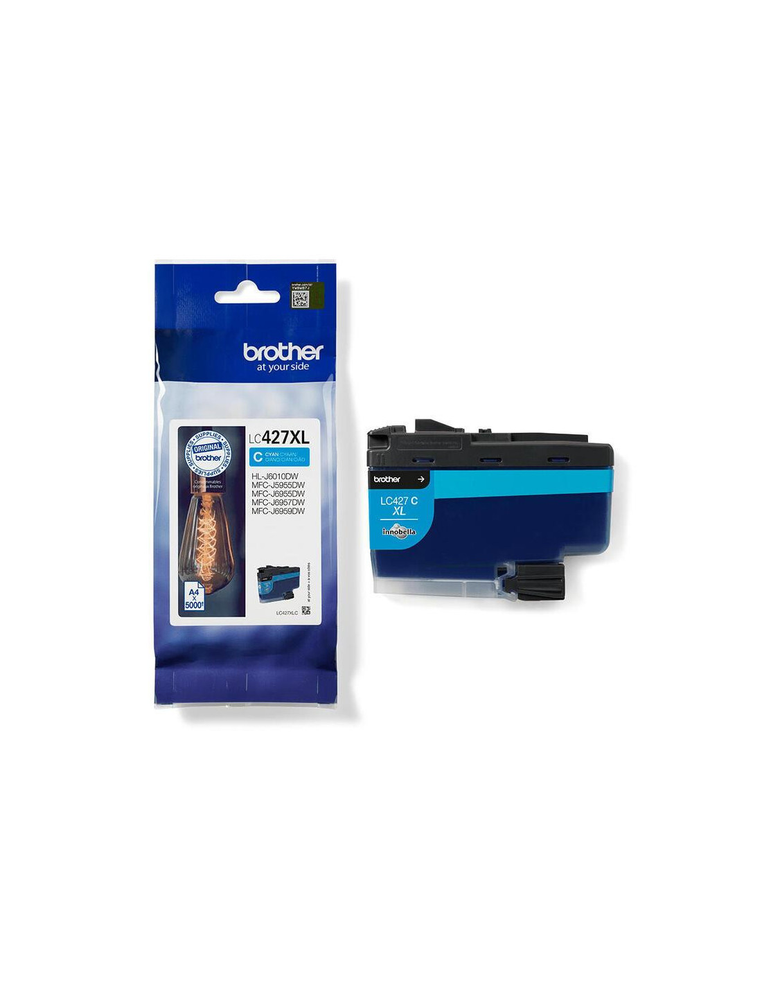 Cartucho de tinta ciano Brother LC427XLC XL para impressoras a jato de tinta. Rendimento de 5000 páginas (a resolução padrão). Compatível com vários modelos de impressoras Brother. Tinta de alta capacidade, para impressão de documentos e imagens de alta qualidade.