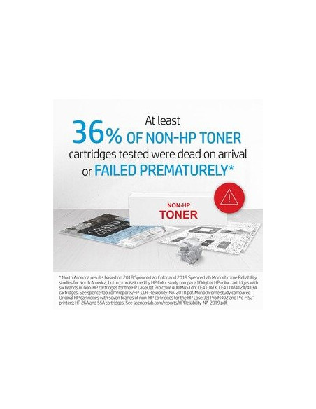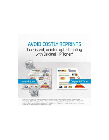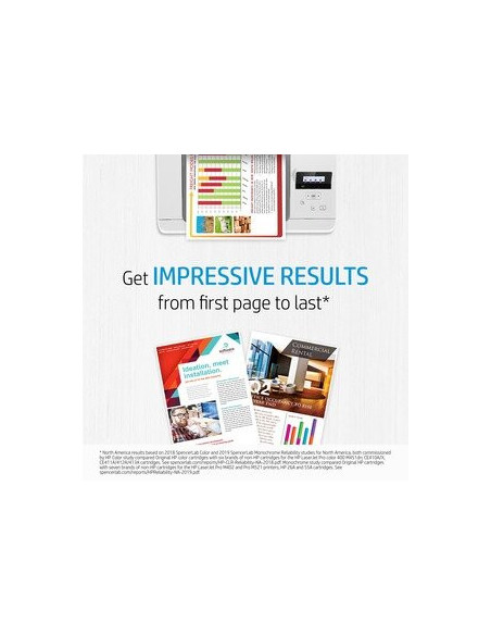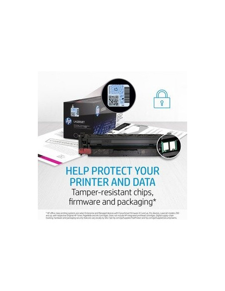 Imprime páginas de calidad profesional y agiliza tu negocio con los cartuchos de tóner Originales HP con JetIntelligence. Disfruta de la tecnología antifraude para obtener la calidad uniforme de HP que esperas y ahorra aún más con los cartuchos de alta capacidad opcionales.[3]