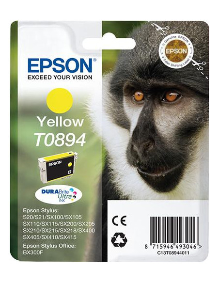 O tinteiro Epson C13T08944011 é um cartucho de tinta amarelo original, compatível com as impressoras Epson Stylus S20 e X205.  Oferece tinta a base de pigmentos para impressões de alta qualidade e durabilidade.  É um cartucho individual, contendo 3,5 ml de tinta amarela.