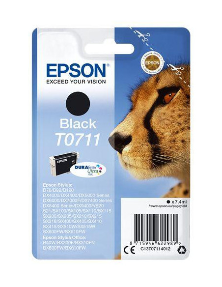 Tinteiro EPSON T0711 Preto - B40/110, BX3xx/600, D120, DX74xx/84xx/9400, SX2xx/4xx5/5xx/6xx