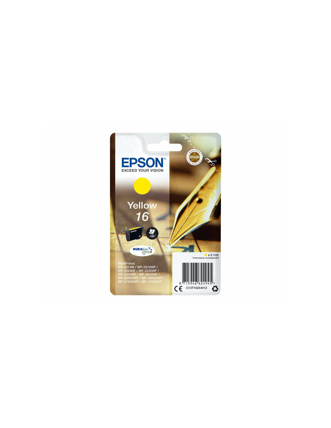 EPSON 1LB 16 ink cartridge yellow standard capacity 3.1ml 165 pages 1-pack blister without alarm