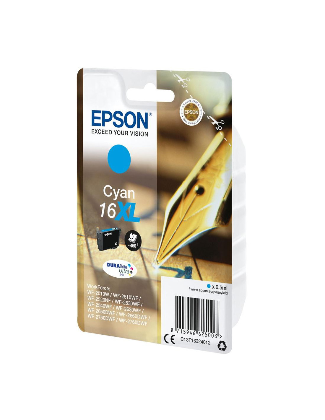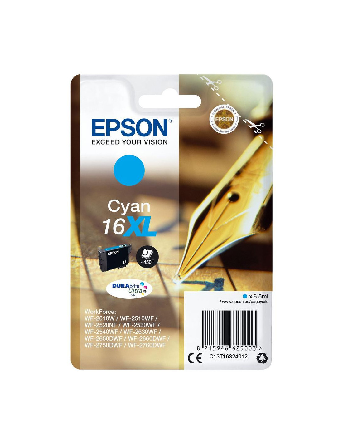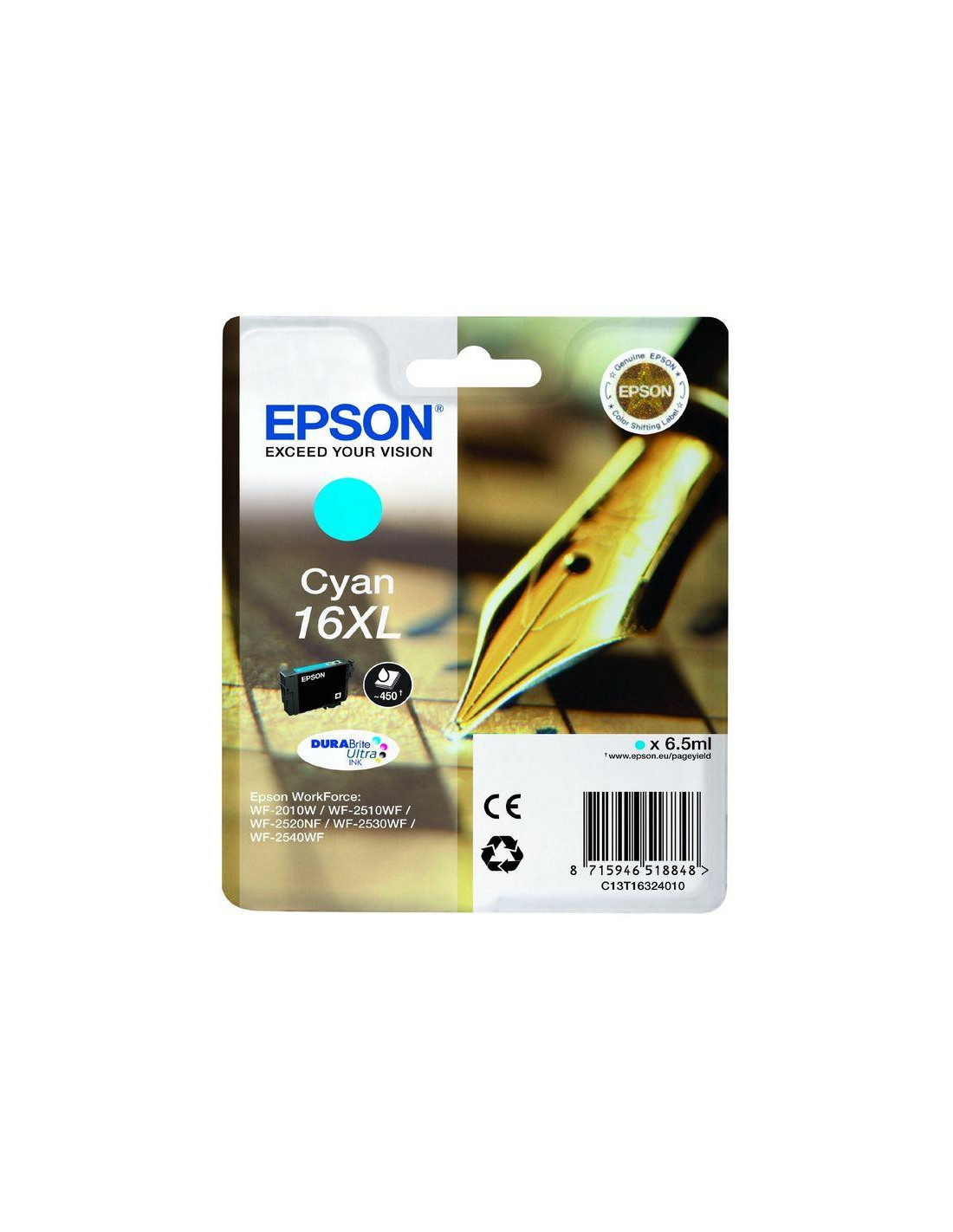 EPSON 1LB 16XL ink cartridge cyan high capacity 6.5ml 450 pages 1-pack blister without alarm