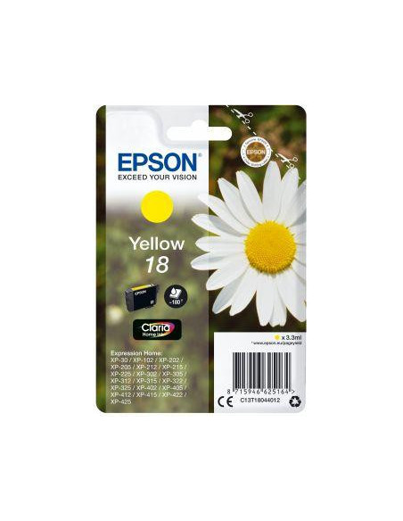 Epson 18 - 3.3 ml - amarelo - original - tinteiro - para Expression Home XP-212, 215, 225, 312, 315, 322, 325, 412, 415, 42(...)