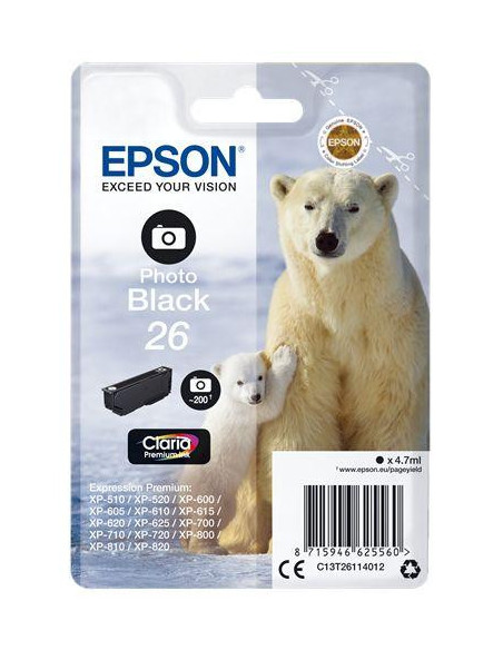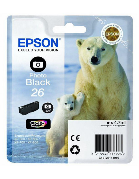 Tinteiro EPSON 26 Preto Foto - Expression Premium XP-5xx/6xx/7xx/8xx