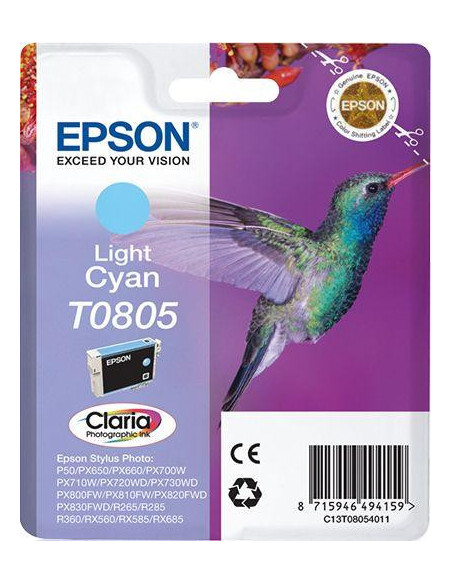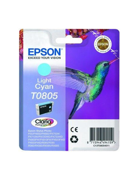 Tinteiro EPSON T0805 Ciano Claro - Stylus Photo P50/PX6xx/PX7xx/PX8xx/R2xx/R360/RX560/RX585/RX685