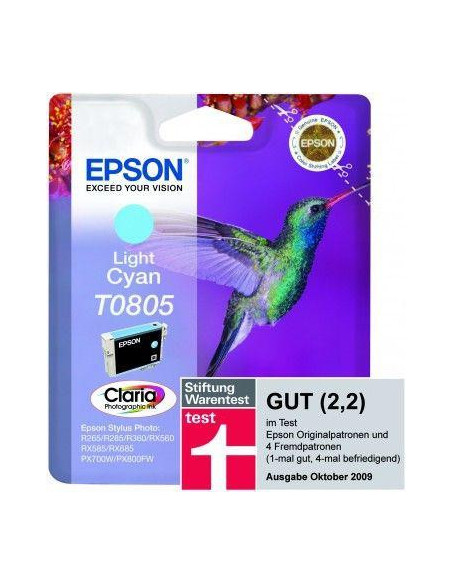 - Resultados sempre perfeitos a tinta Epson original permite obter um resultado duradouro e vibrantes para todos os documentos e fotografias Quer esteja a fazer trabalhos escolares a cores a imprimir páginas Web ou a trabalhar num álbum de fotografias acores a Epson oferece-lhe o melhor - Tinteiro Epson de tinta cyan clara T0805 - Stylus Photo R265285360RX560585685P50PX650700W710W720WD800FW810FW820FWD