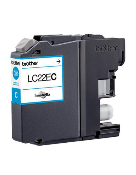 Cartucho de tinta cian Brother LC22EC, de alta capacidade, para impressão a jato de tinta. Ideal para impressoras multifuncionais e plotters. Oferece rendimento para até 1200 páginas (em resolução standard). Compatível com MFCJ5920DW. Garantia de 12 meses.
