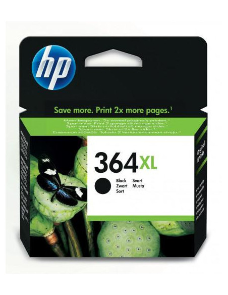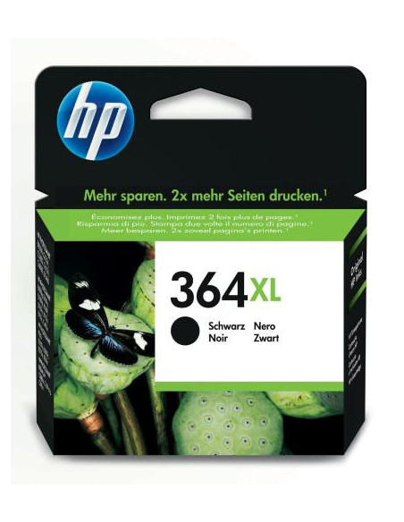 Cartucho de tinta original HP 364XL preto, de alta capacidade (XL), ideal para imprimir documentos e fotografias de alta qualidade em casa. Oferece um rendimento aproximado de 550 páginas e é compatível com uma variedade de impressoras HP. A tinta pigmentada garante cores vibrantes e duradouras. Fácil substituição individual.