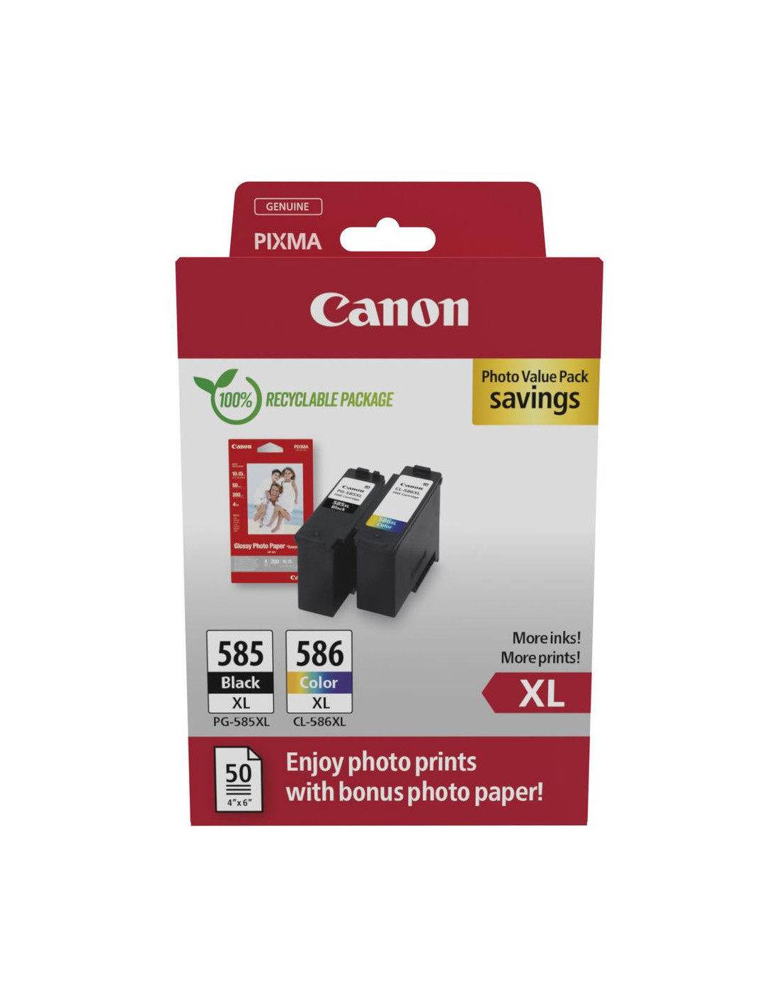 Canon; Impressoras Jacto Tinta Papeis; Pack (Tinteiro+Papel) ; PG-585XL/CL-586XL PHOTO VALUE - 4x6 Phot Paper(GP-501 50sheets) + XL Black & XL Colour Cartridges » válido p/ unid. faturadas até 31 de Dezembro ou fim de stock