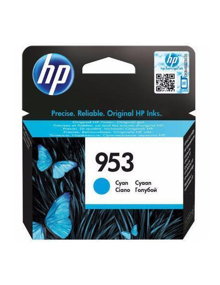 Cartucho de tinta original HP 953 cian (F6U12AE#BGX). Oferece impressões de qualidade profissional, cores vibrantes e texto nítido. Rendimento de 700 páginas (resolução padrão). Ideal para uso profissional.