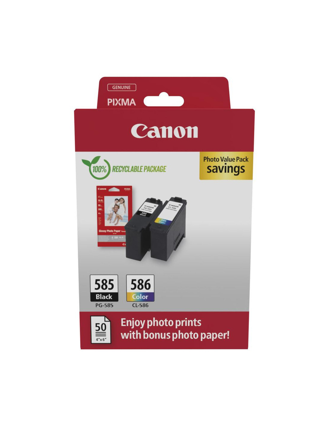 Canon; Impressoras Jacto Tinta Papeis; Pack (Tinteiro+Papel) ; PG-585/CL-586 PHOTO VALUE - 4x6 Phot Paper(GP-501 50sheets) + Black & Colour Cartridges » válido p/ unid. faturadas até 31 de Dezembro ou fim de stock