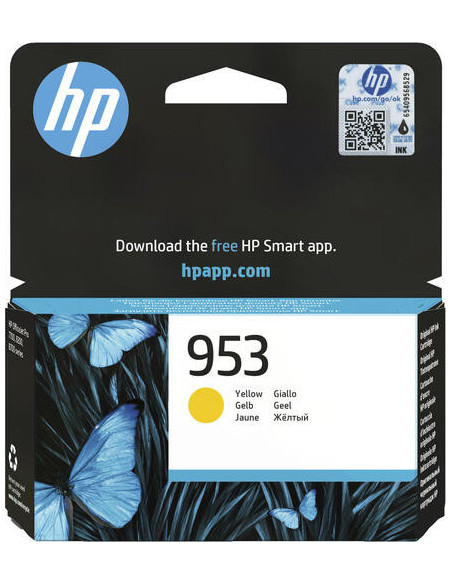 Cartucho de tinta HP 953 amarelo, com código F6U14AE, ideal para grupos de trabalho que necessitam de impressão fiável e acessível com qualidade profissional. Oferece resultados de qualidade profissional, página após página. As tintas HP originais garantem desempenho confiável, rendimento uniforme por página e resultados excelentes. A impressão é rápida com tintas individuais e opções de cartuchos de alto rendimento.