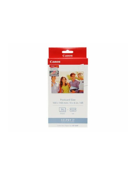 Consumível Canon KP-36IP para impressoras Selphy (CP780/790/800/810). Cartucho de impressão para cartões postais. Garante impressões de alta qualidade e cores vibrantes. Fácil de instalar. Ideal para eventos e lembranças.