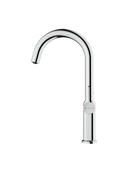 A misturadora de cozinha Teka Oval 915, pertencente à gama Total, destaca-se pelo seu design elegante e funcional.  Com acabamento cromado, confere um toque de modernidade e sofisticação a qualquer cozinha. O seu cano alto giratório proporciona flexibilidade e conforto na utilização diária, permitindo alcançar diferentes pontos do lavatório com facilidade.