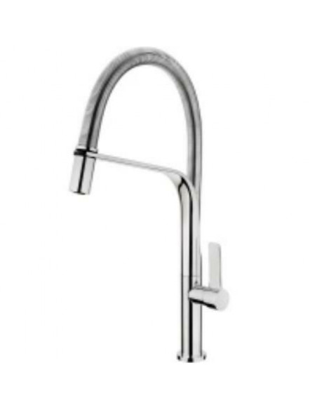 Monocomando para lava- -louças com cano giratório Filtro anticalcário Mola flexível de grande resistência Tubo flexível em aço inoxidável Chuveiro extraível com função jato ventilado Cartuchos de discos cerâmicos Tubos de alimentação flexíveis