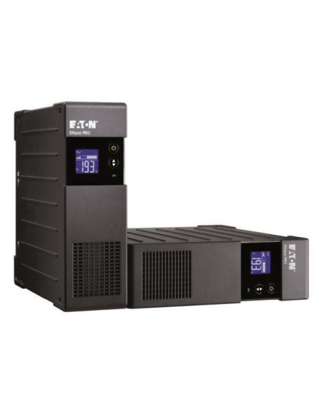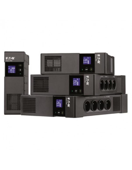 O Ellipse PRO inclui quatro tomadas de saída IEC para uma fácil conexão aos seus equipamentos. O design extra plano permite uma instalação facilitada em qualquer ambiente de escritório, com opções de instalação vertical, debaixo da mesa, horizontalmente debaixo do monitor, montagem em rack de 19? (com kit opcional) e montagem em parede (com kit opcional). O SAI é equipado com uma porta USB e inclui um cabo de conexão e o software de gestão de energia Eaton UPS Companion. Este software proporciona um desligamento seguro, medição de energia e uma fácil configuração do SAI.