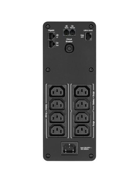 O BR1600SI possui 8 tomadas AC, permitindo conectar diversos equipamentos simultaneamente. Um prático interface LCD fornece informações sobre o estado da bateria, potência de saída e outras informações importantes. A tecnologia de bateria VRLA (Sealed Lead Acid) é selada e livre de manutenção, com uma vida útil máxima de 5 anos, e um tempo de recarga completo de 16 horas. O UPS também oferece funções como arranque a frio (Cold Start), permitindo ligar os equipamentos mesmo sem energia da rede, e a possibilidade de troca de bateria a quente (Hot-Swap).