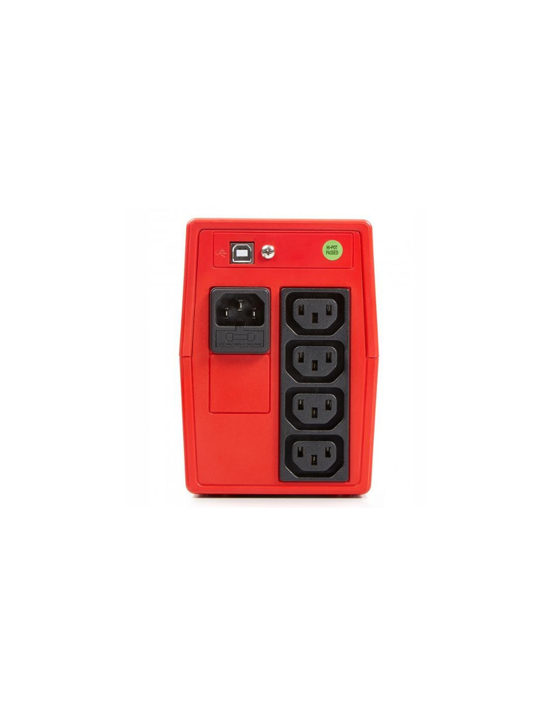 O design é compacto e discreto, com dimensões de 14,2 cm de largura, 30 cm de altura e 10,1 cm de profundidade, e um peso de 3,5 kg. A sua cor vermelha facilita a identificação e o seu funcionamento silencioso (40 dB) torna-o ideal para escritórios e ambientes residenciais. As características de segurança são completas, com certificação CE. Embora não possua certificações Energy Star ou IEC 60950-1, cumpre os mais altos padrões de segurança e fiabilidade. Inclui um cabo USB para monitorização e gestão.