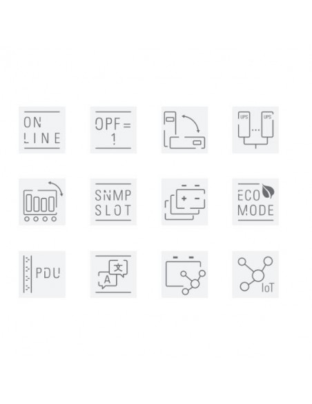 Além disso, a placa de rede integrada permite monitorização remota e gestão do UPS através de software, facilitando o controlo e a manutenção. A integração de recursos de IoT (Internet das Coisas) abre novas possibilidades de monitorização e gestão inteligente. O tempo de atuação é de apenas 2 ms, garantindo uma resposta rápida em caso de falhas na rede elétrica. O UPS oferece uma forma de onda senoidal pura, garantindo compatibilidade com os equipamentos mais sensíveis. Dispõe de 10 tomadas IEC C13 e IEC C19, e suporta tensões de saída em 220V, 230V e 240V. A eficiência com carga total é de 97%. A unidade também oferece uma tomada de telefone (RJ11). O nível de ruído é de 50 dB. As dimensões são: 43,8 cm de largura, 57 cm de profundidade e 22 cm de altura. O peso do equipamento é de 62 kg. O UPS é certificado CE. A bateria utiliza tecnologia de chumbo selado, composta por 16 baterias com 7 Ah de capacidade cada, garantindo um tempo de funcionamento de até 17 minutos com meia carga e 10 minutos com carga total. O sistema inclui cabo USB. O UPS também permite a derivação, que pode ser configurada como opcional.