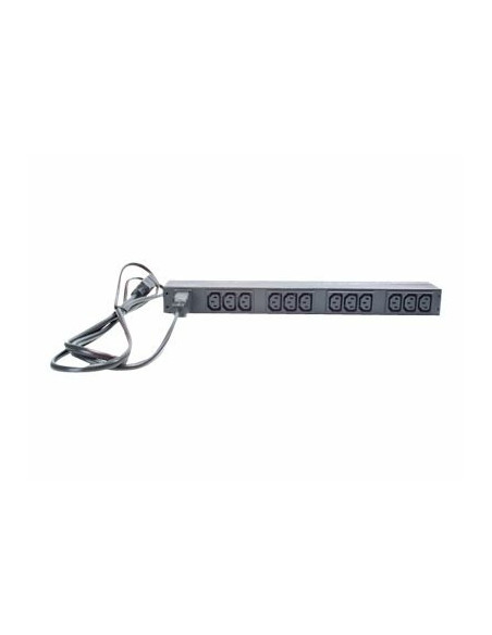 Unidade de Distribuição de Energia (PDU) Rack APC Basic de 1U, 16A, 208/230V, com 12 tomadas C13. Ideal para gestão de energia em racks de servidores.  Oferece proteção e monitorização de equipamentos.