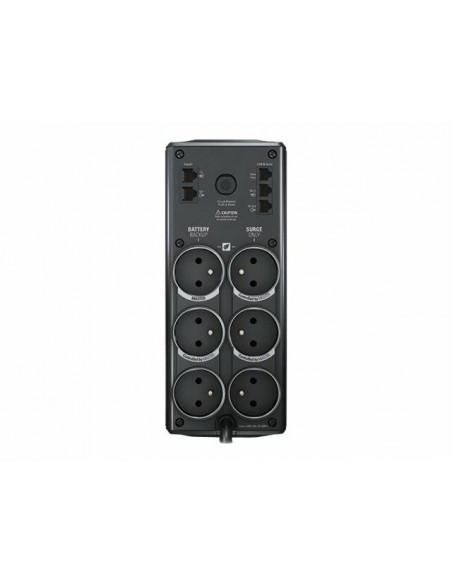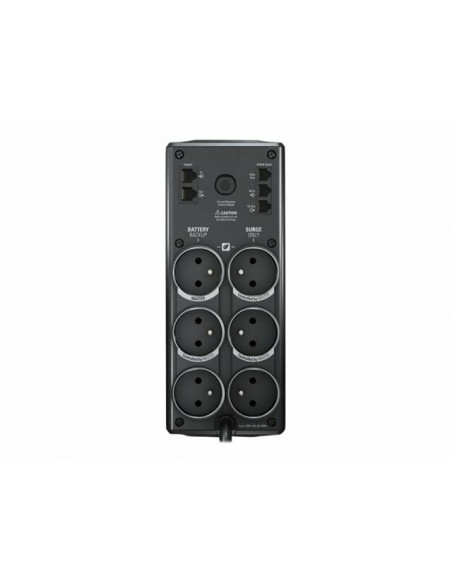 - Detalhes dos conectores de saída de energia: 3 x potência CEE 7/5 (UPS and surge) 3 x potência CEE 7/5 (sobretensão)