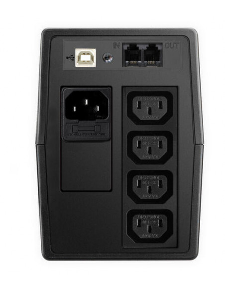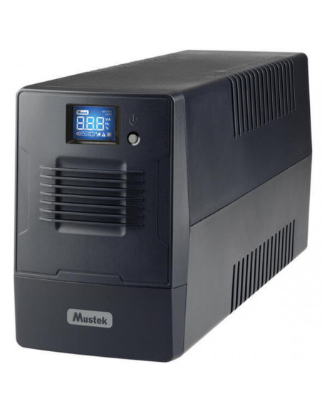 UPS Mustek PowerMust 600 LCD Line Int. IEC de tamanho compacto com 4 tomadas IEC, painel LCD e gestão remota por porta USB e software ViewPower.