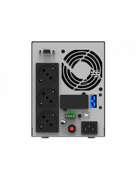 O fator de potência de saída de 0,9 garante uma utilização eficiente da energia, enquanto a onda sinusoidal pura assegura a compatibilidade com uma ampla gama de equipamentos. O carregamento inteligente em 3 etapas otimiza a vida útil das baterias. A interface de comunicação RS232 e USB permite o monitoramento e controlo do SAI, oferecendo maior flexibilidade de gestão. Os modelos com opção SNMP permitem monitorização e controlo remoto via web.