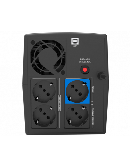 A funcionalidade de reinicialização e recarga automáticas, juntamente com o arranque a frio, asseguram que a UPS esteja sempre pronta para fornecer energia de backup quando necessário. A proteção contra sobretensão e a capacidade de carregamento off-line completam as funcionalidades deste equipamento, tornando-o numa solução completa para a proteção de equipamentos eletrónicos.