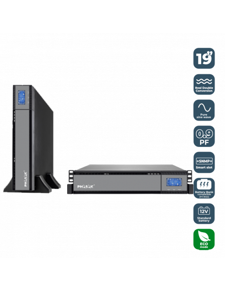 A UPS Phasak Online Rack 2000VA oferece proteção de energia contínua e de alta qualidade. Com tecnologia de dupla conversão online, garante energia limpa e estável, ideal para equipamentos críticos. Inclui gestão avançada com visor LCD, compatibilidade com software VIEWPOWER e proteção para conexões de rede.