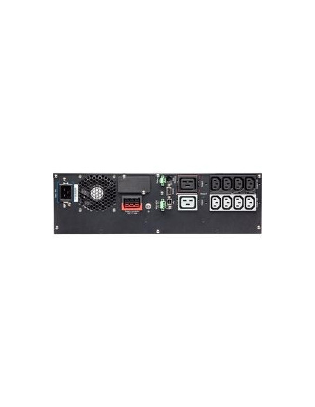 Com uma capacidade de 3000VA/3000W, o 9PX 3000i RT3U suporta uma ampla gama de equipamentos. Seu design versátil permite a instalação em racks de 19 polegadas (formato rack, 3U) ou em posições de torre, oferecendo flexibilidade para diferentes configurações. A unidade inclui 10 tomadas de saída: 8 conectores IEC-C13 (10A) e 2 conectores IEC-C19 (16A), para conectar uma variedade de equipamentos. Para garantir uma instalação adequada e facilitar a organização dos cabos, o SAI inclui guias para rack e cabo de alimentação.