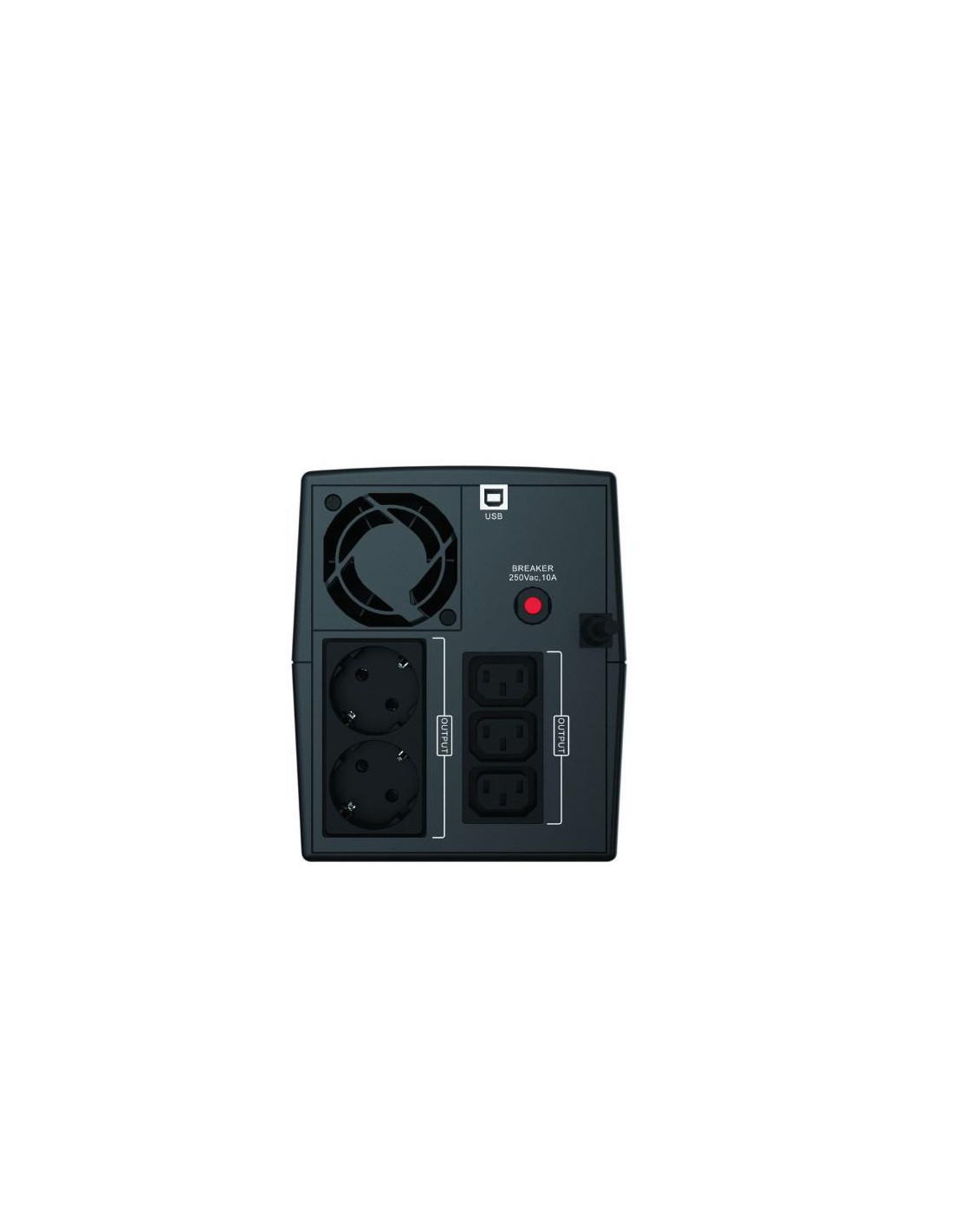 Este UPS possui 5 tomadas de saída (3 IEC e 2 Schuko), oferecendo flexibilidade na ligação de diferentes dispositivos. A conectividade USB permite monitorizar o estado da bateria e outras informações importantes através do software incluído. O sistema AVR (Automatic Voltage Regulation) regula automaticamente a tensão de saída, garantindo uma alimentação estável e protegendo os seus equipamentos contra picos de energia. Em caso de falha de energia, o UPS fornece tempo suficiente para desligar os seus equipamentos de forma segura, minimizando o risco de danos.