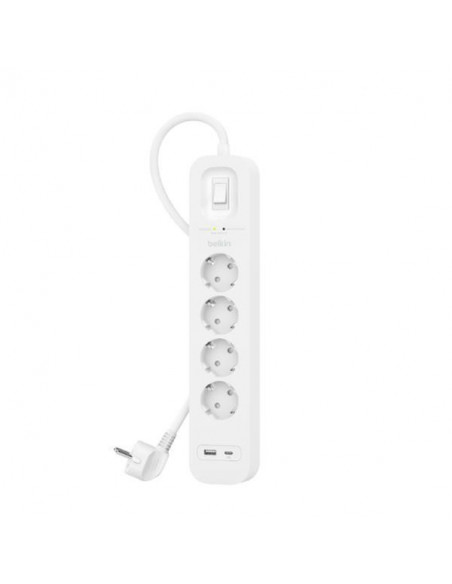 A régua de tomadas BELKIN Surge Socket é uma solução ideal para quem procura proteção contra surtos de tensão e carregamento conveniente para múltiplos dispositivos.  Este produto combina 4 tomadas AC tradicionais com portas USB-A e USB-C, proporcionando versatilidade e segurança para os seus equipamentos eletrónicos.  Com uma proteção contra surtos de 525 jrégua de tomadasa regleta garante a salvaguarda dos seus dispositivos contra danos causados por flutuações de energia, prolongando a sua vida útil e evitando avarias inesperadas.