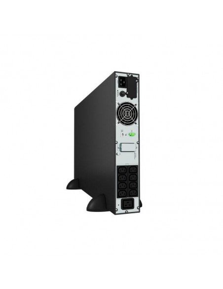 Com uma eficiência de até 96% no modo ECO e 91% no modo online, este UPS contribui para reduzir os custos de energia. O tempo de recarga é rápido, permitindo que a bateria esteja novamente pronta para funcionar em pouco tempo. O equipamento inclui múltiplas tomadas de saída AC (9), uma porta USB para monitorização e um dispositivo de desligamento de emergência.