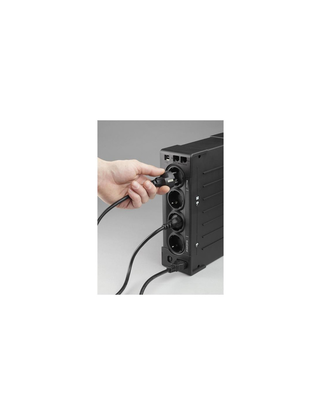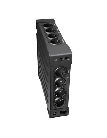 Para facilitar a monitorização e gestão do sistema, o EL1200USBDIN possui uma porta USB, permitindo a conexão a um computador para monitoramento do estado da bateria e outras informações importantes. O dispositivo também possui 4 tomadas de saída Schuko, proporcionando ampla capacidade de conectividade para os seus dispositivos.