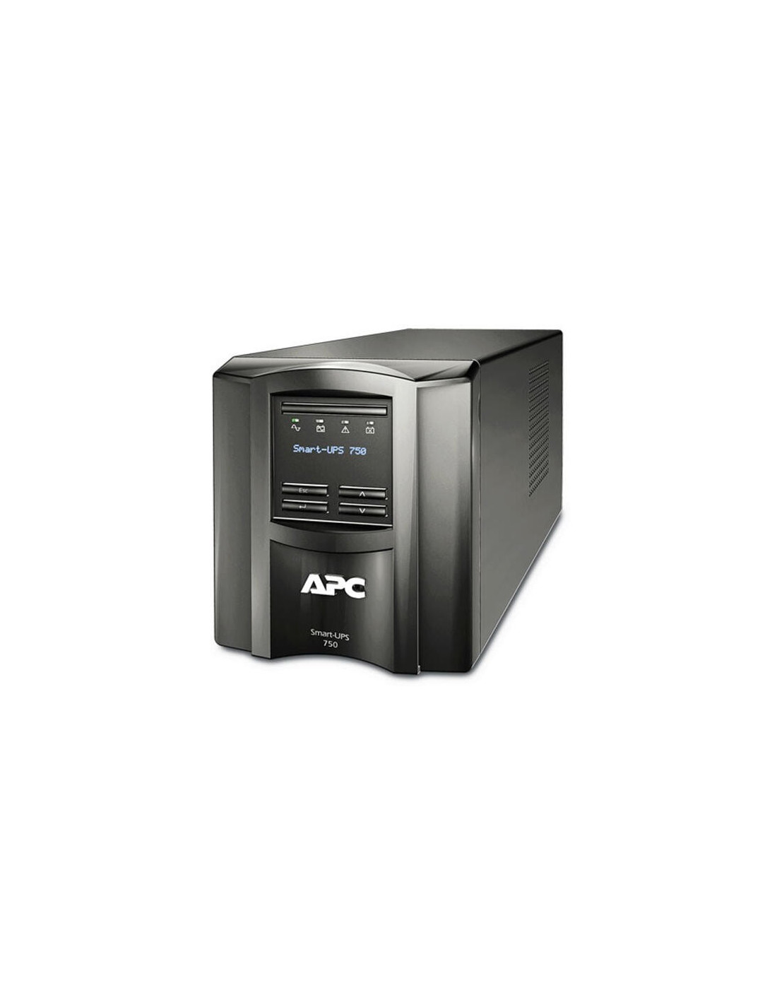 No-break APC Smart-UPS SMT750IC com tecnologia SmartConnect, oferecendo 750VA de potência. Inclui ecrã LCD e 6 tomadas IEC-C13. Compatível com Cloud.