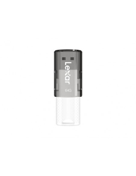 Pen USB Lexar JumpDrive S60 com 64GB de capacidade, interface USB Tipo A 2.0 e design deslizante. Ideal para armazenamento portátil de ficheiros, esta pen USB é compatível com PC e Mac e oferece proteção contra poeira e riscos. Oferece portabilidade e facilidade de utilização.