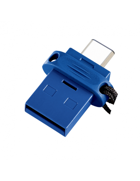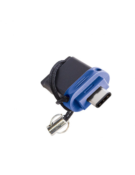 Pen USB Verbatim Store N Go Dual com interface dupla USB 3.0 e USB-C para transferência de dados rápida e eficiente. Com capacidade de 64GB, oferece amplo espaço de armazenamento. Design compacto e azul.
